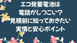 エコ発蓄電池について エコ発蓄電池は電話がしつこい?見積前に知っておきたい実情と安心ポイント エコ発蓄電池は電話がしつこいのか不安な方へ。実際の連絡内容や頻度、安心して見積を進めるための考え方をわかりやすく解説します。 2026.01.06 エコ発蓄電池について