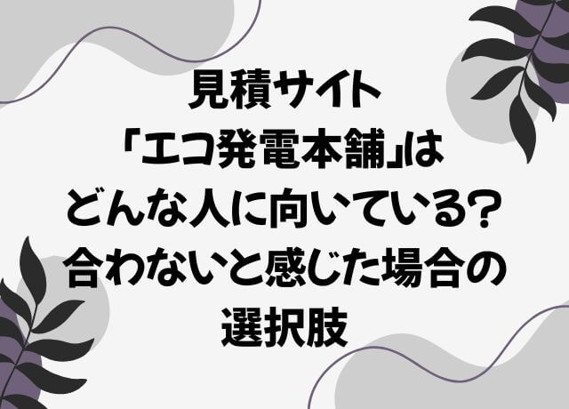 見積サイト「エコ発電本舗」はどんな人に向いている?合わないと感じた場合の選択肢